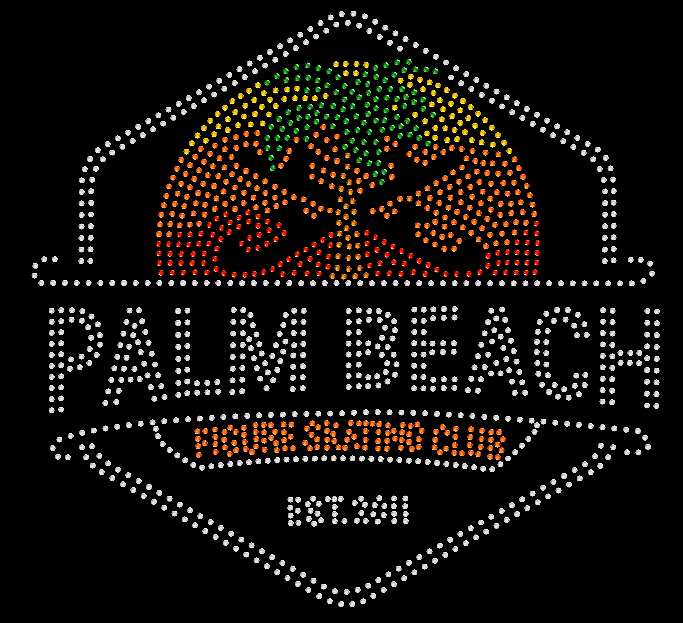 Embroidered logo on the front left chest with skater’s name on the right chest. Logo on the back with bling.